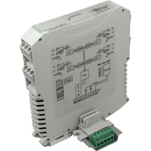 4 канальный модуль аналогового вывода с поканальной гальванической развязкой на RS-485. Программное задание вида и диапазона выходного сигнала. Защита всех входов/выходов.