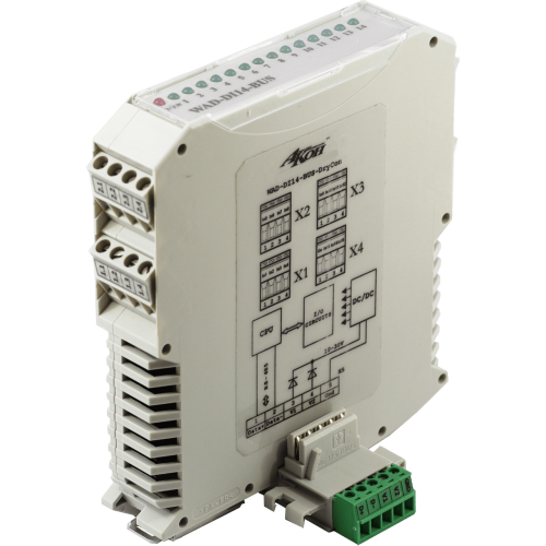 14-ти канальный модуль дискретного ввода (входа) с групповой гальванической развязкой, контролем обрыва линии, на RS-485. Обычное исполнение или "сухой контакт". Защита всех входов/выходов.