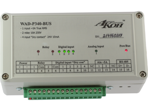 Также применяется контроллер WAD-P680-BUS, производящий измерение тока, напряжения, коэффициента мощности, активной, реактивной и полной мощности по трем фазам, также имеет восемь входов для подключения дискретных датчиков и четыре релейных выхода для управления коммутационно-силовыми аппаратами и резервный интерфейс RS485.